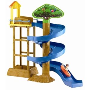 - Help him race his die-cast kayak down the winding river and off the launching pad. Once the job is done, put the kayak on the elevator to return to the Rescue Center above.