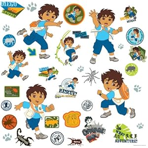 Go, Diego, Go! Diego's adventures are coming right to your walls with this set of fun and colorful appliques. Any adventurous little boy would appreciate these stickers on his walls. Make one or many scenes with Diego in various poses, and use the additional appliques to decorate mirrors, bookshelves, headboards, or anything else in the room. Makes a great gift, too!